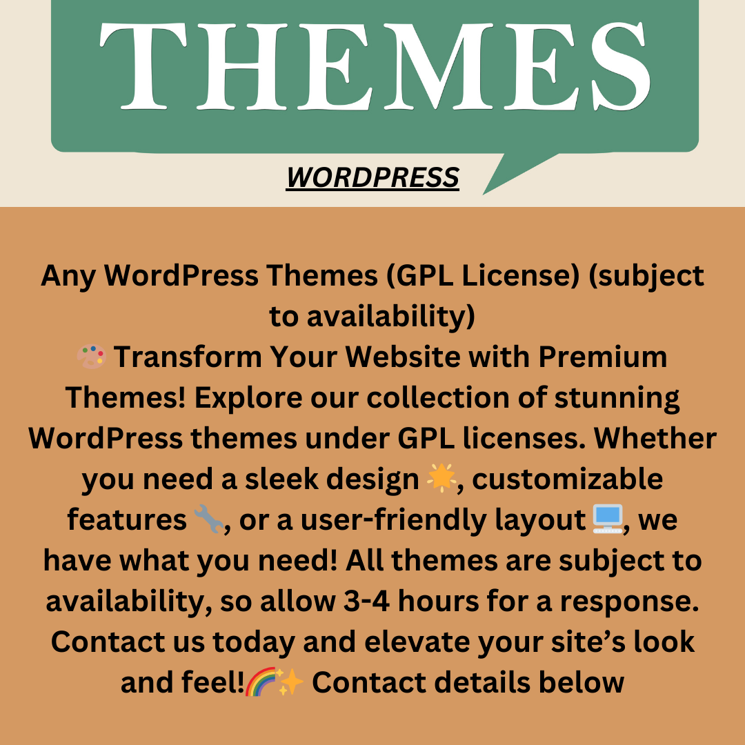 Explore our collection of stunning WordPress themes under GPL licenses. Whether you need a sleek design ๐, customizable features ๐ง, or a user-friendly layout ๐ฅ๏ธ, we have what you need! All themes are subject to availability, so allow 3-4 hours for a response.